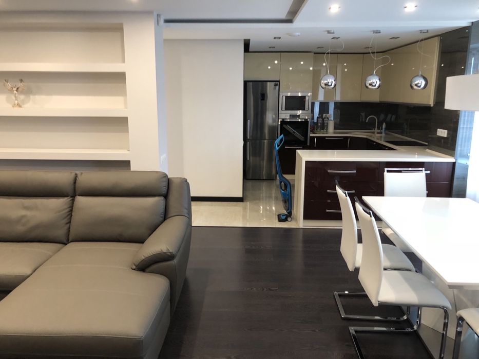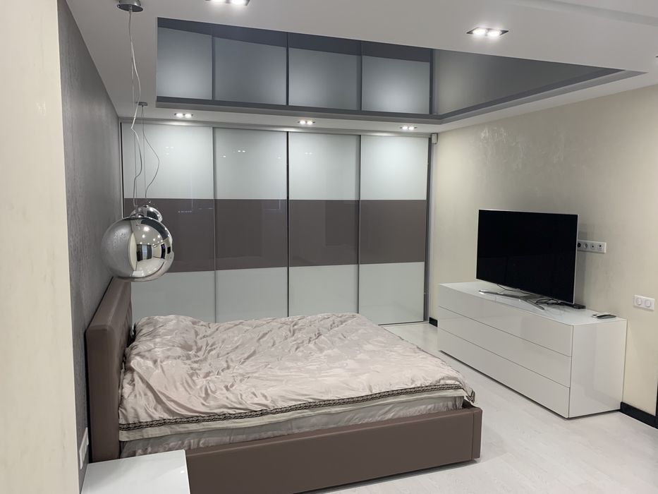 Квартира з сучасним дорогим ремонтом, меблями та технікою. Гардеробна кімната. Два кондиціонери. Сучасний дизайн. В центрі міста та елітному будинку.