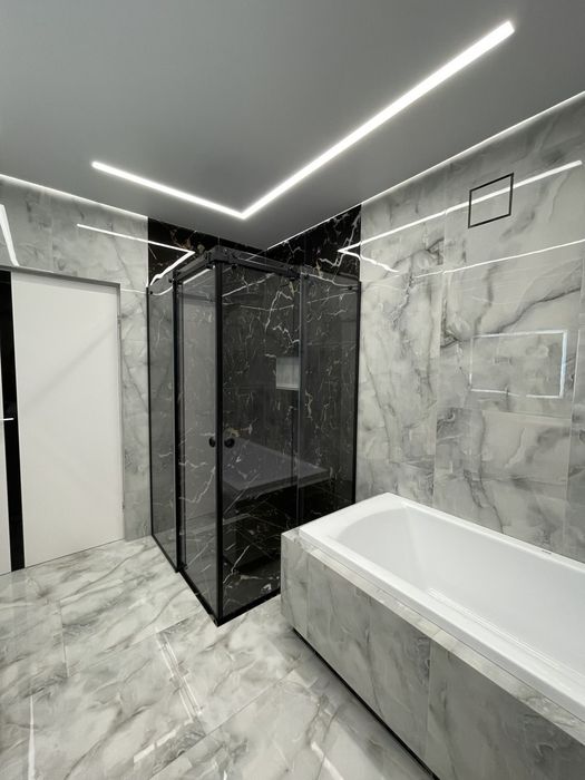 - ванна кімната з душовою кабіною та ванною
