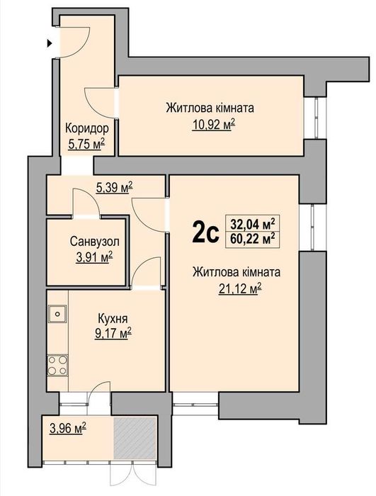 Загальна площа: 60 м²