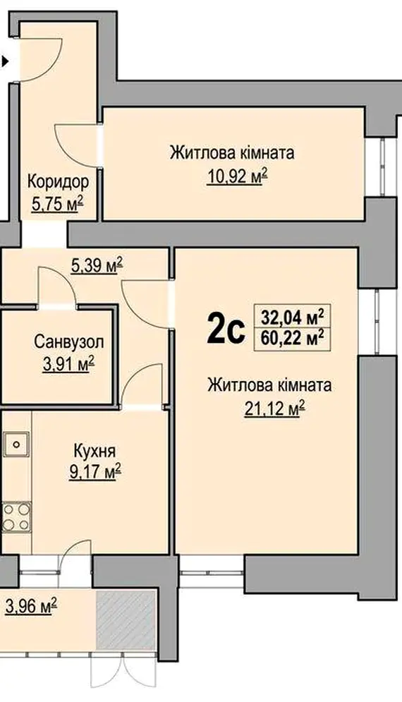 Загальна площа: 60 м²