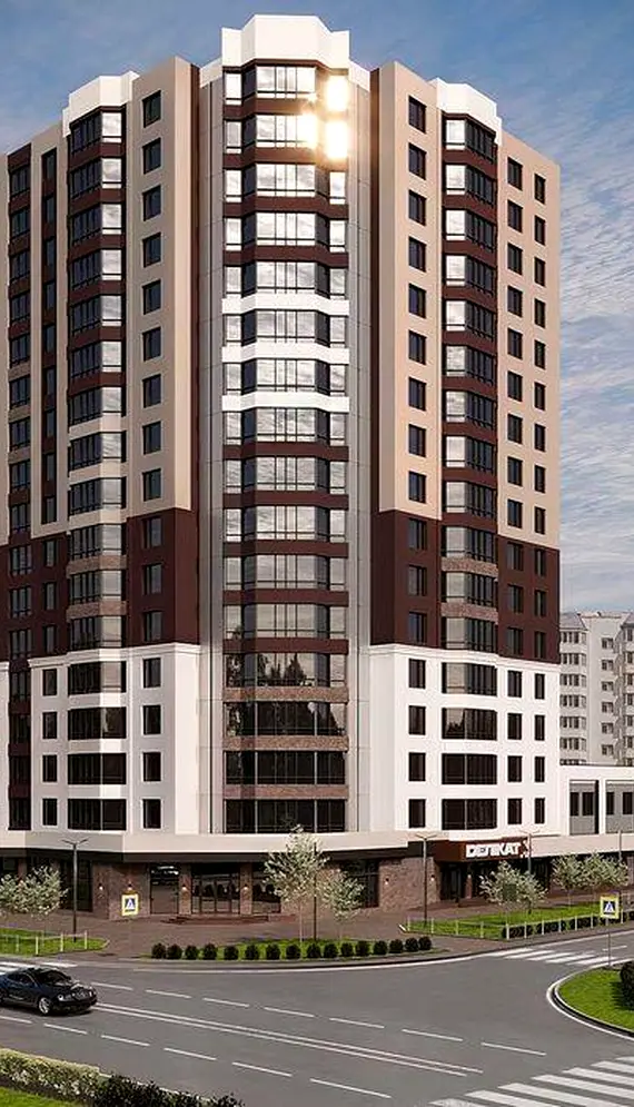 192-квартирний каркасно-монолітний житловий будинок. Зовнішні стіни з газоблоків товщиною 300 мм із утепленням мінераловатними плитами 100 мм і по залізобетонних конструкціях – товщиною 150 мм, оздоблені декоративною штукатуркою. Лоджії та балкони засклені. Покрівля із застосуванням покриттів інверсійного типу, із сучасних покрівельних матеріалів, утеплена. Висота житлових поверхів 2,70 м від підлоги до стелі. Передбачено підземний паркінг.