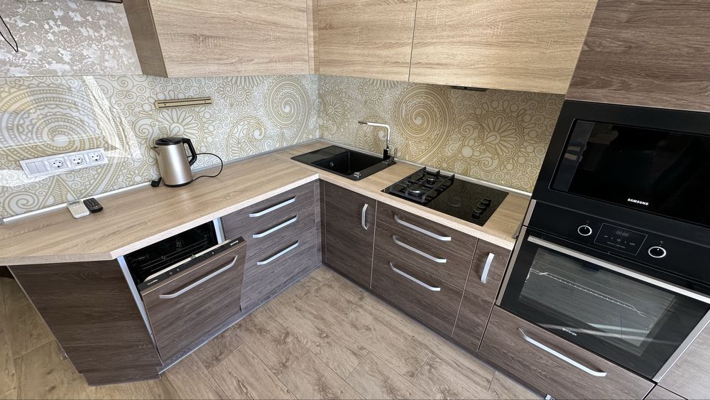 Побутова техніка: Посудомийна машина, Електрочайник, Холодильник, Варильна панель, Мікрохвильова піч, Духова шафа, Пральна машина