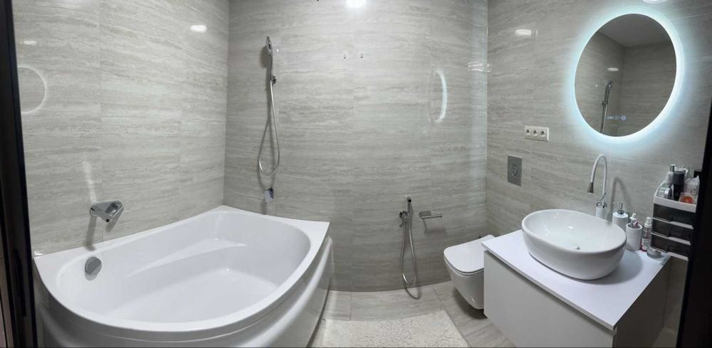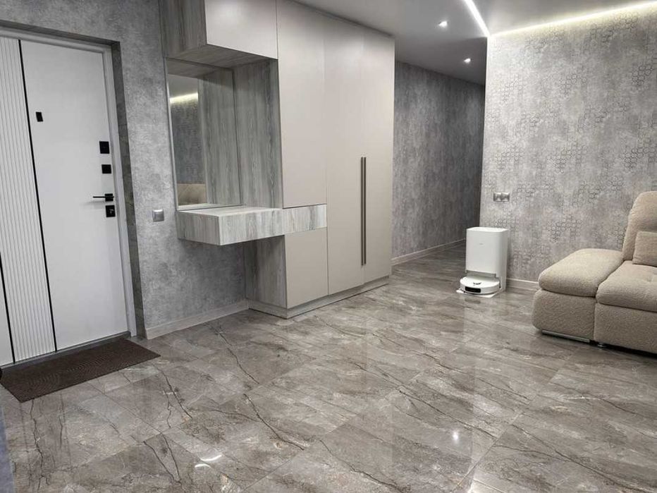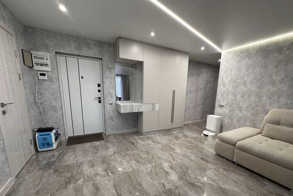 Квартира знаходиться на 5-му поверсі в 10 поверховому будинку,повністю укомплектована з великими панорамними вікнами та з ремонтом хорошої якості.