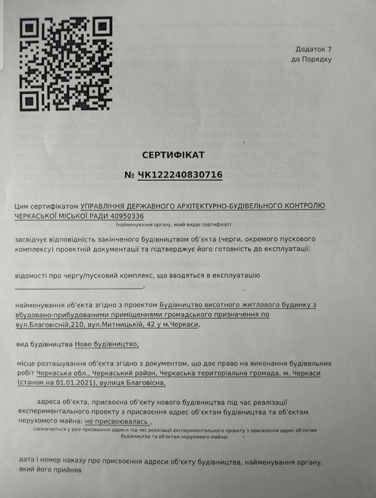 Тип об'єкту: Новобудова
