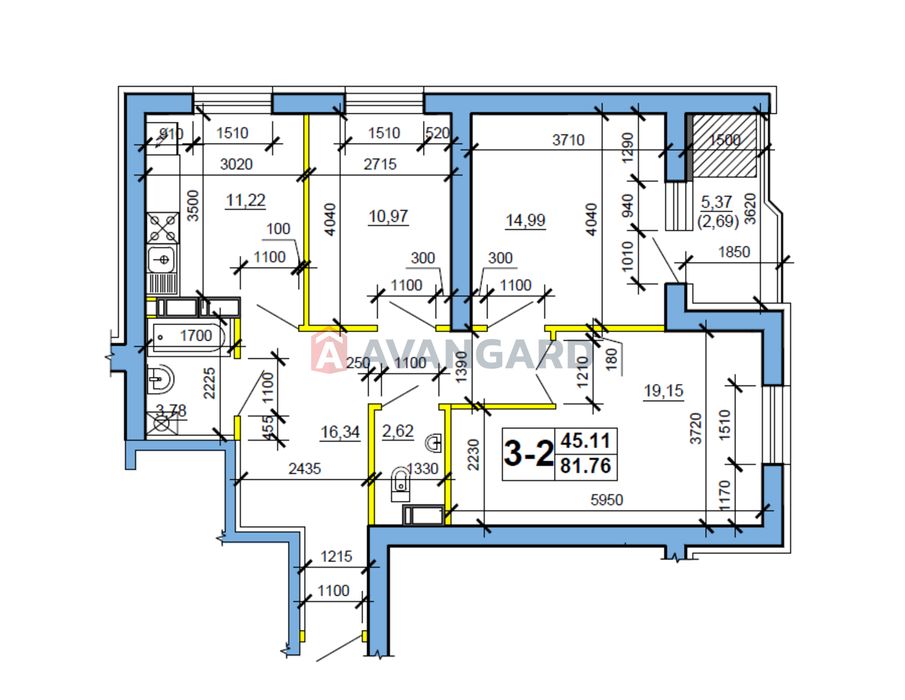 Загальна площа: 85.1 м²