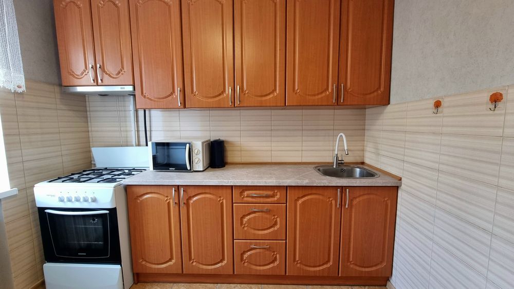 мобільний кондиціонер, мікроволновка, єлектрочайник, газова плита та духовка.