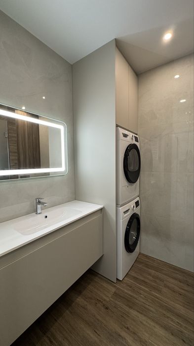 • Сучасна ванна кімната з пральною машиною та сушаркою