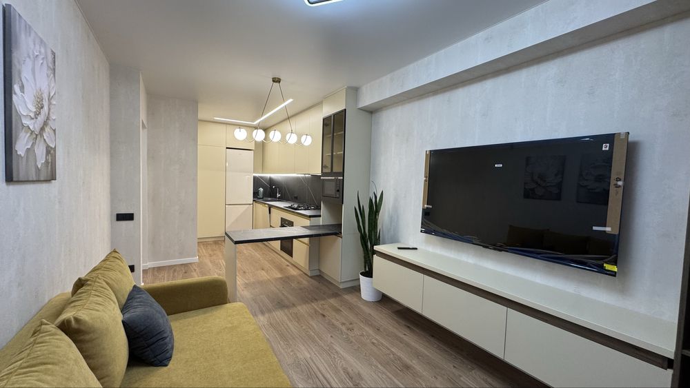 • Простора кухня-вітальня з барною стійкою, великим телевізором та зручним диваном