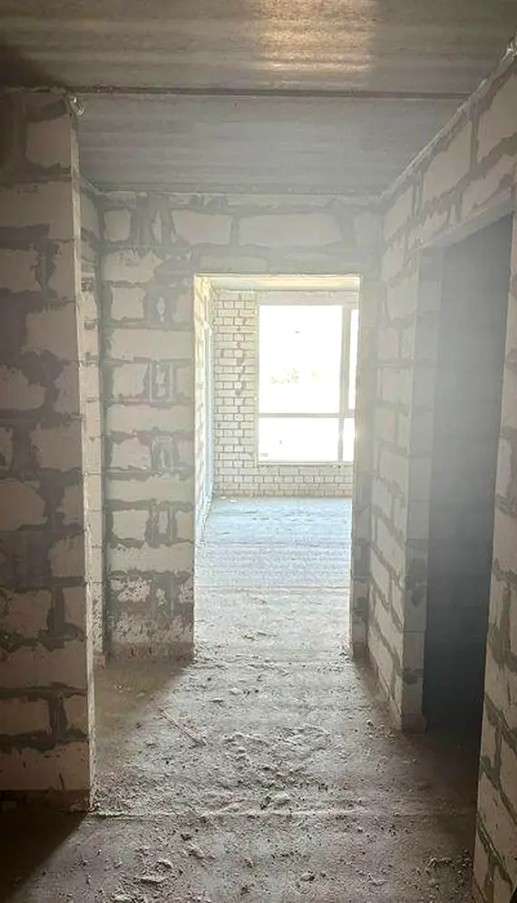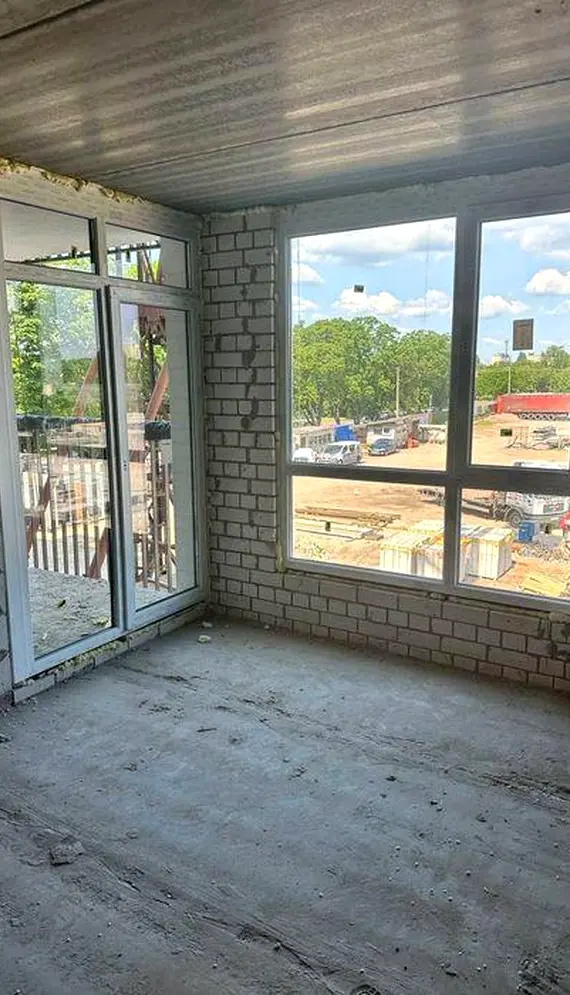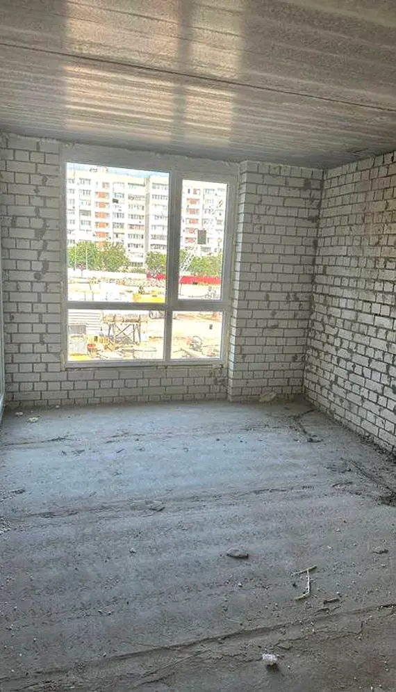 Квартира після будівельників, без ремонту. Планування включає лоджію, до якої є вихід як з кухні, так і зі спальні.