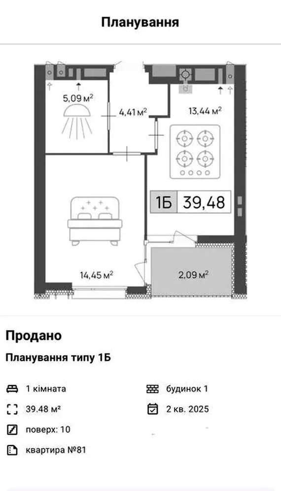 Загальна площа: 39.5 м²