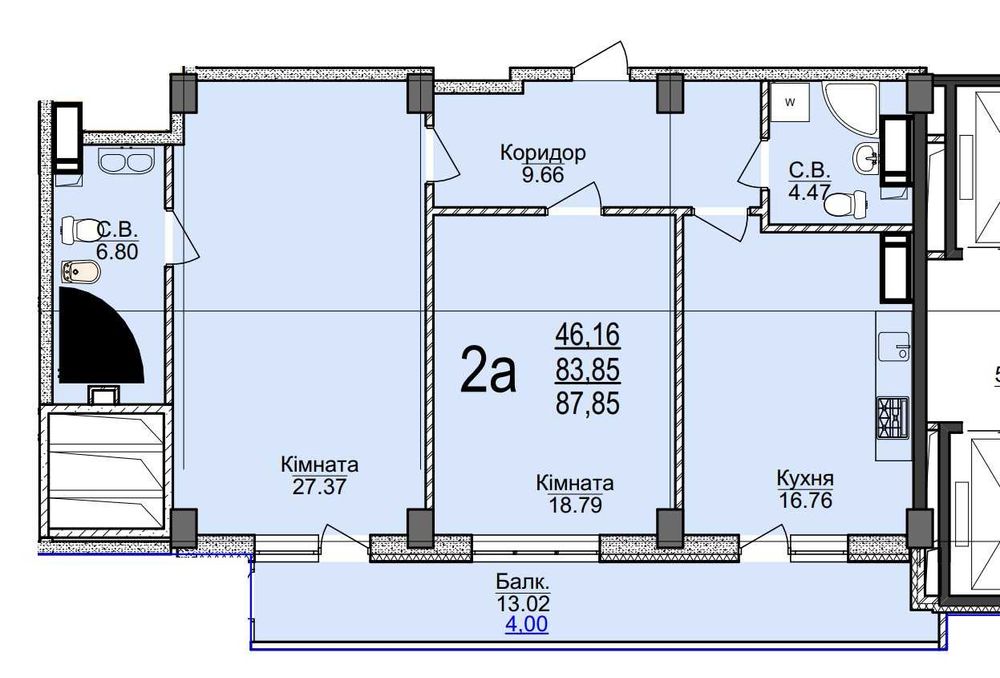 Загальна площа: 87.85 м²