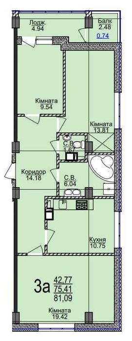 Загальна площа: 81.09 м²