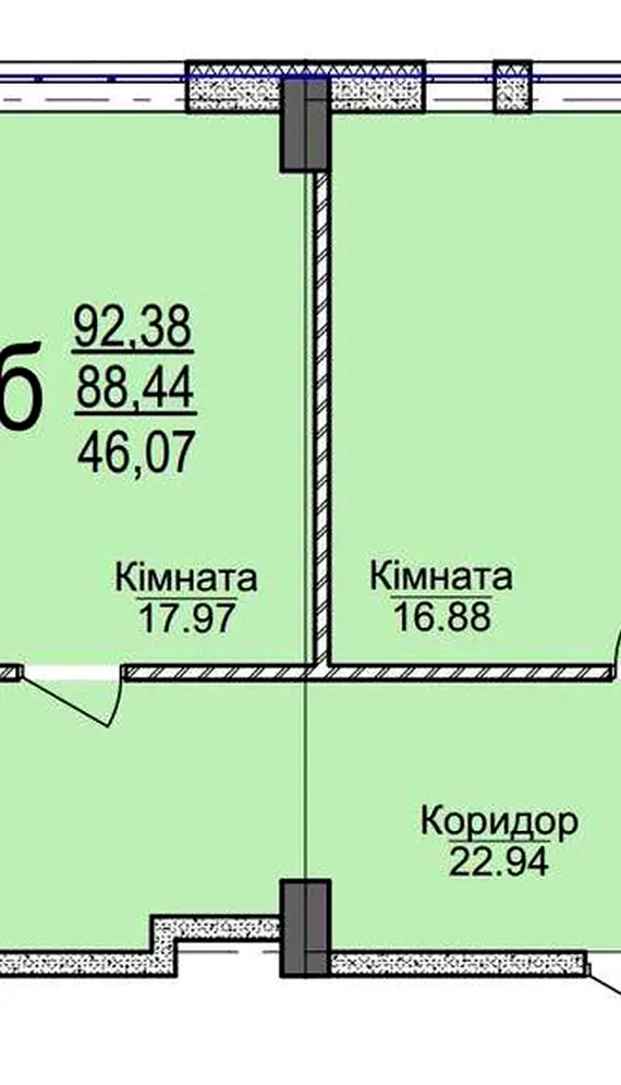 Загальна площа: 92.38 м²