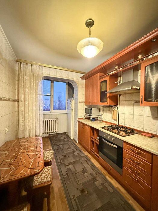 Квартира з комфортним плануванням: три окремі кімнати, простора вітальня та повністю облаштована кухня.