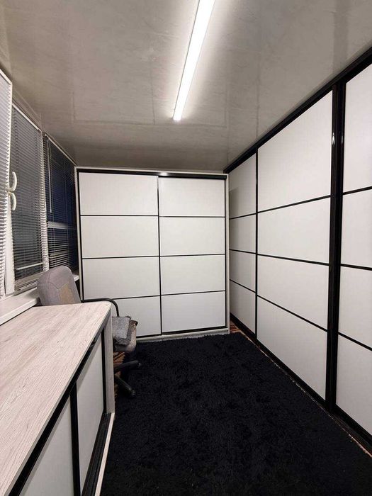 Роздільний санвузол, засклений балкон і дві лоджії. Одна з лоджій облаштована як робочий кабінет.