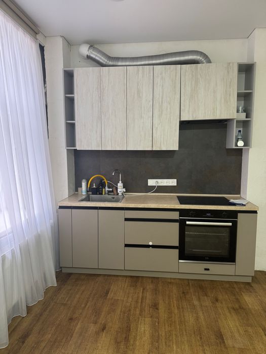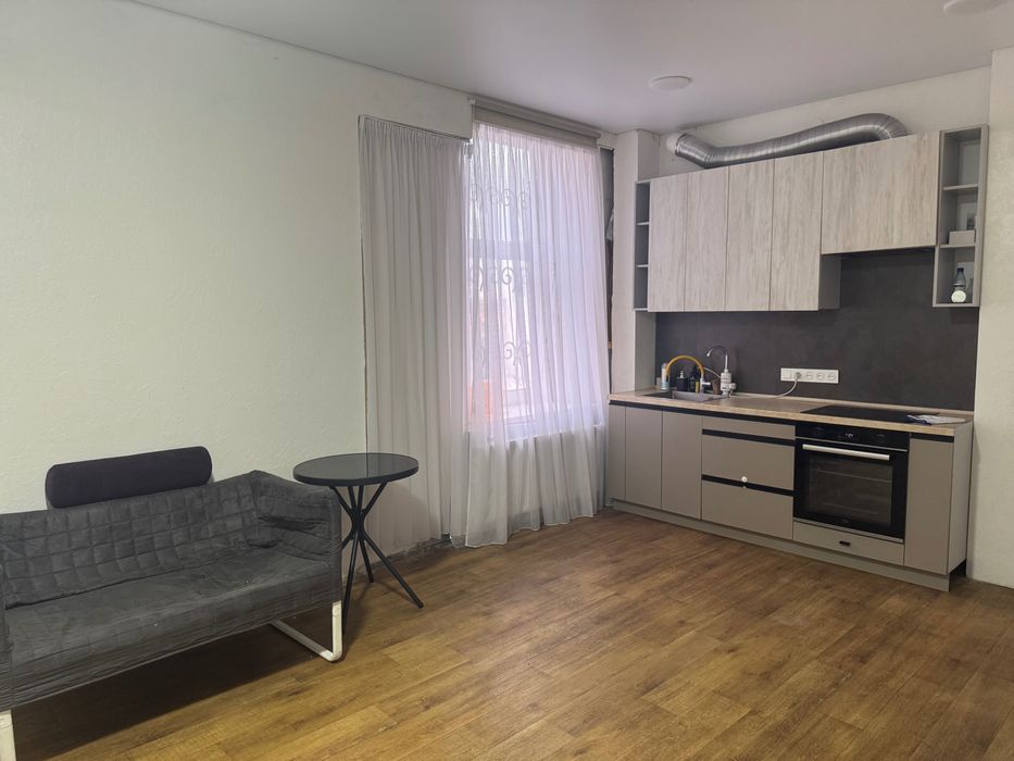 В квартирі зроблений косметичний ремонт, велика кухня-студія, в якій залишається вбудовані меблі і техніка, спальня та санвузол.