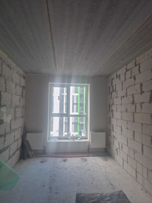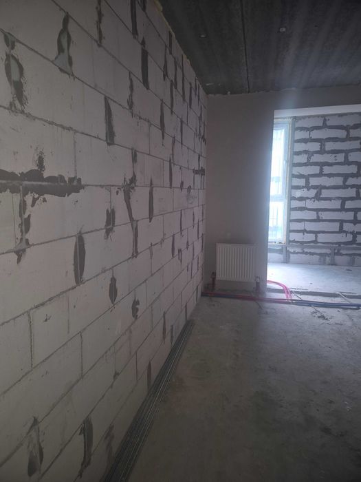 У квартирі вже виконано штукатурення стін у кухні та ванній кімнаті,