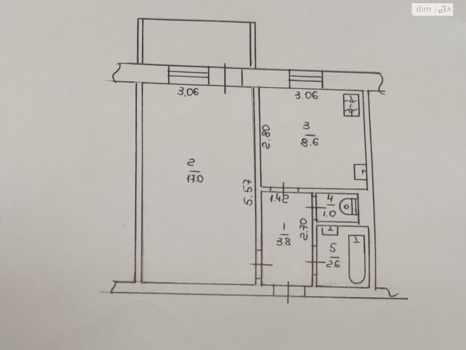 Площа 35 м². Житлова: 17м². Кухня: 8, 6м².