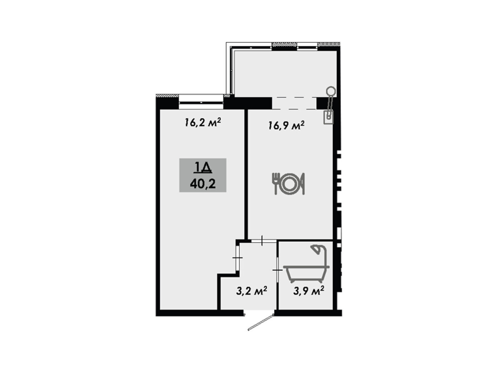 Загальна площа: 40.2 м²