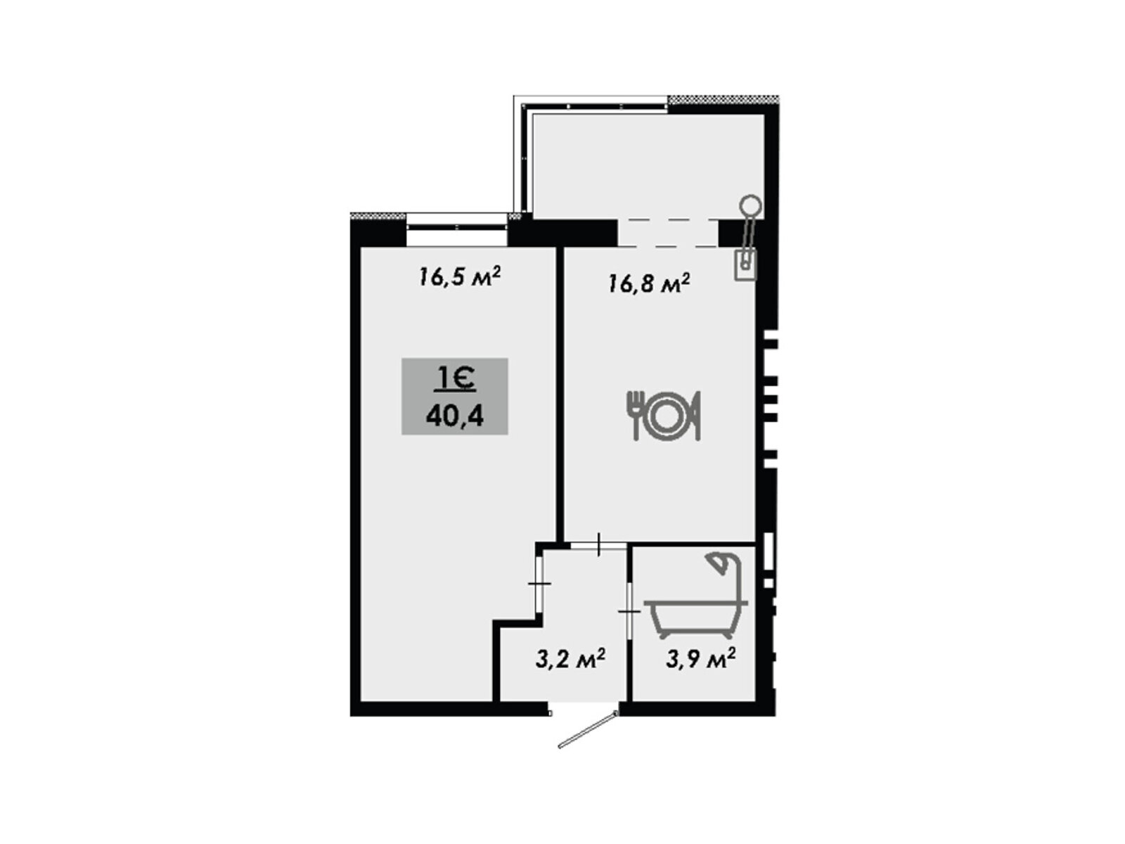 Загальна площа: 40.4 м²