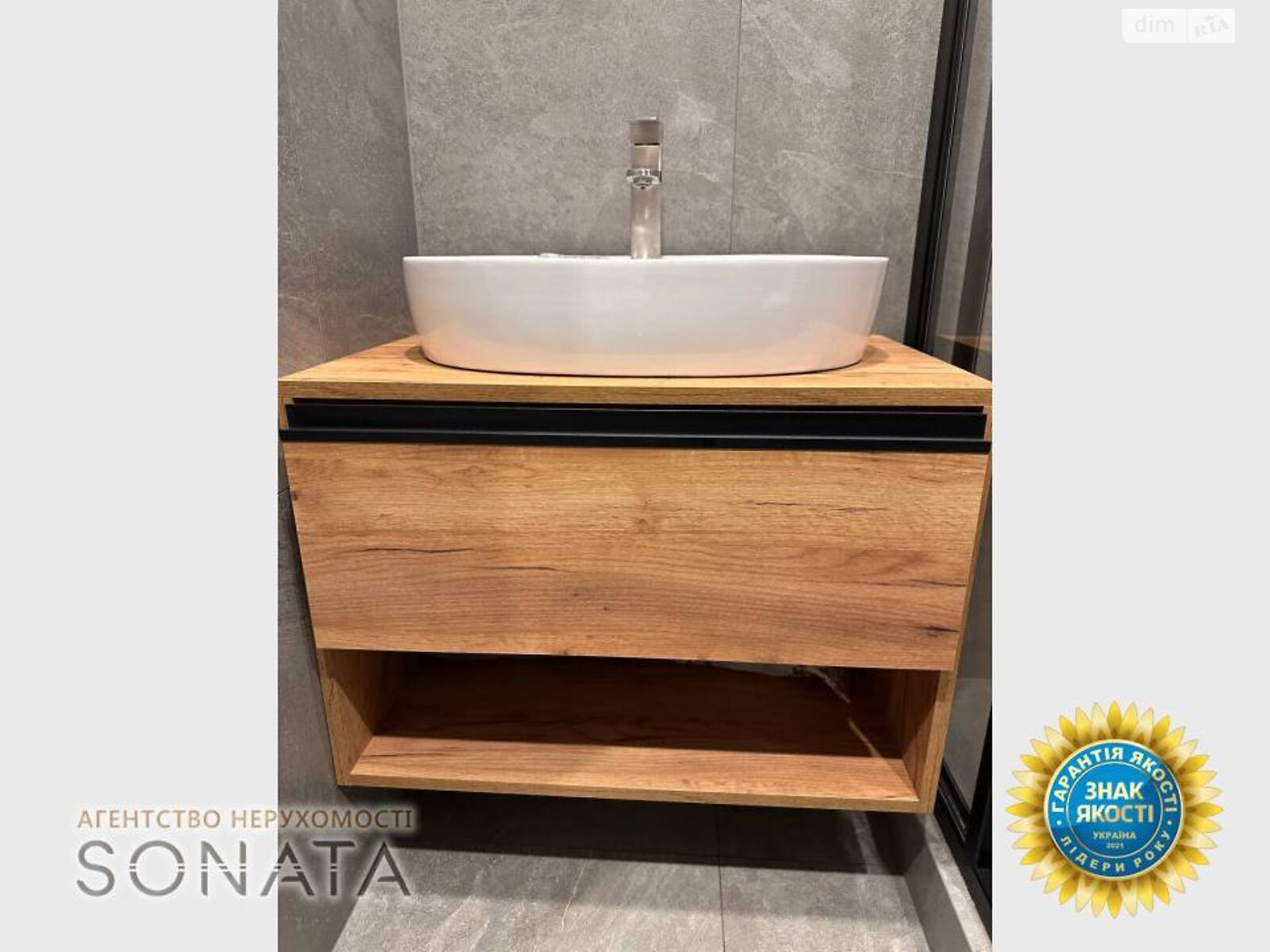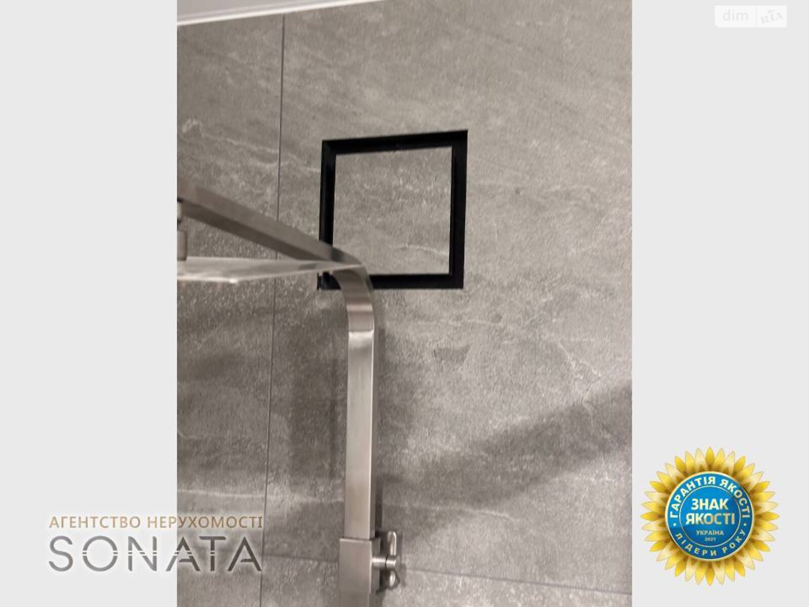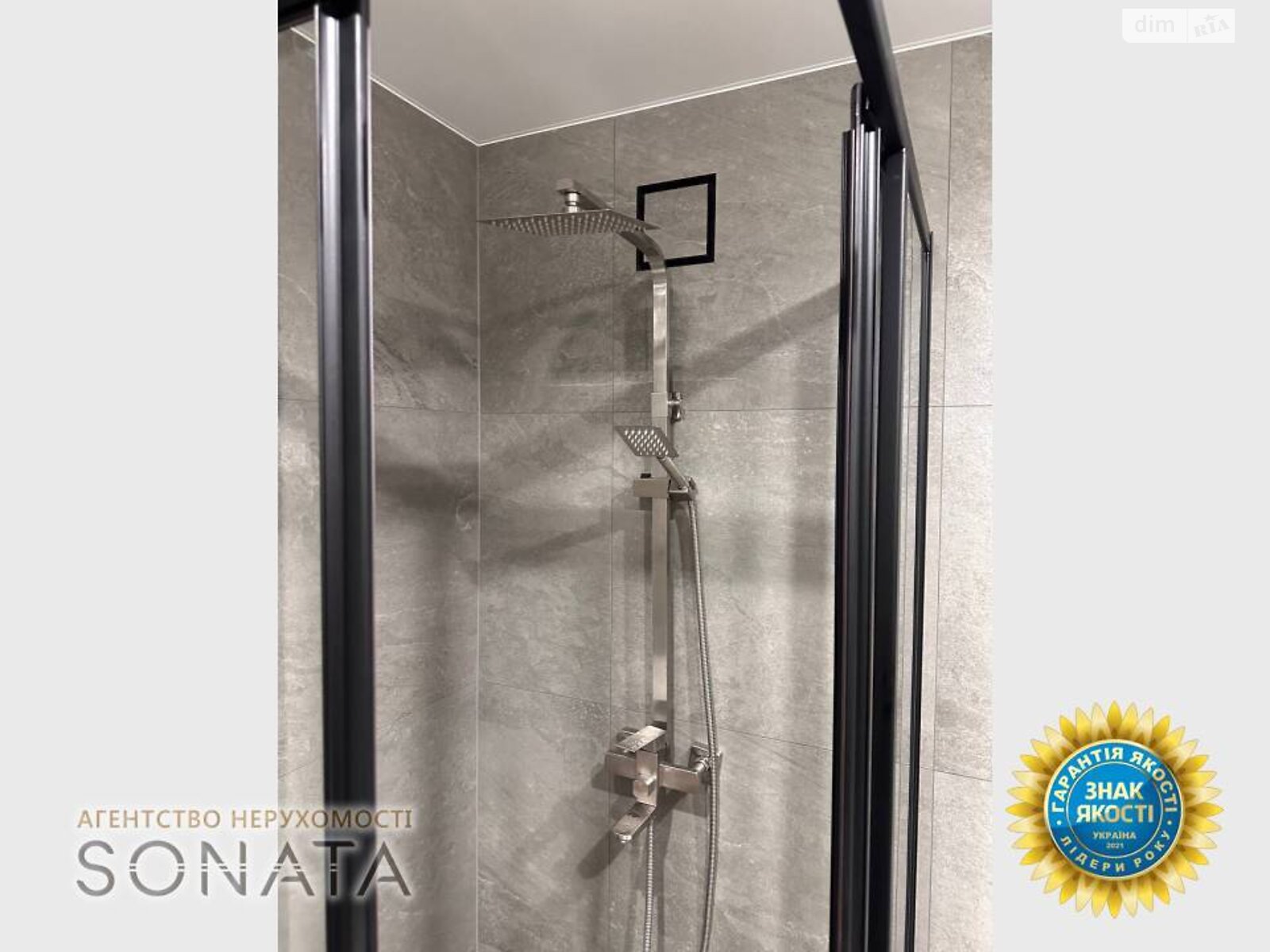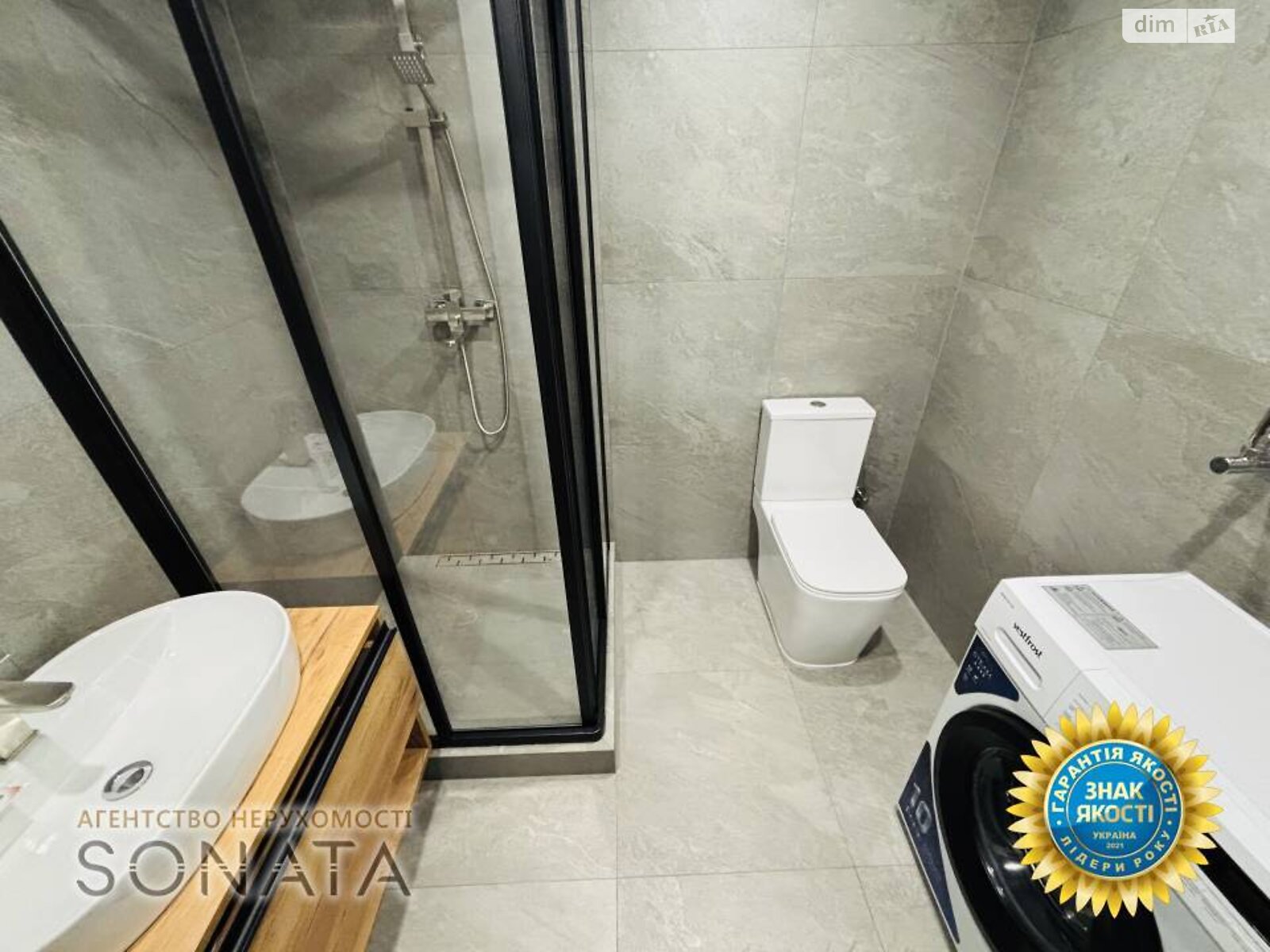 Ванна кімната виконана в сучасних сірих тонах, встановлена душова кабіна та вся сантехніка фірми Ravak.