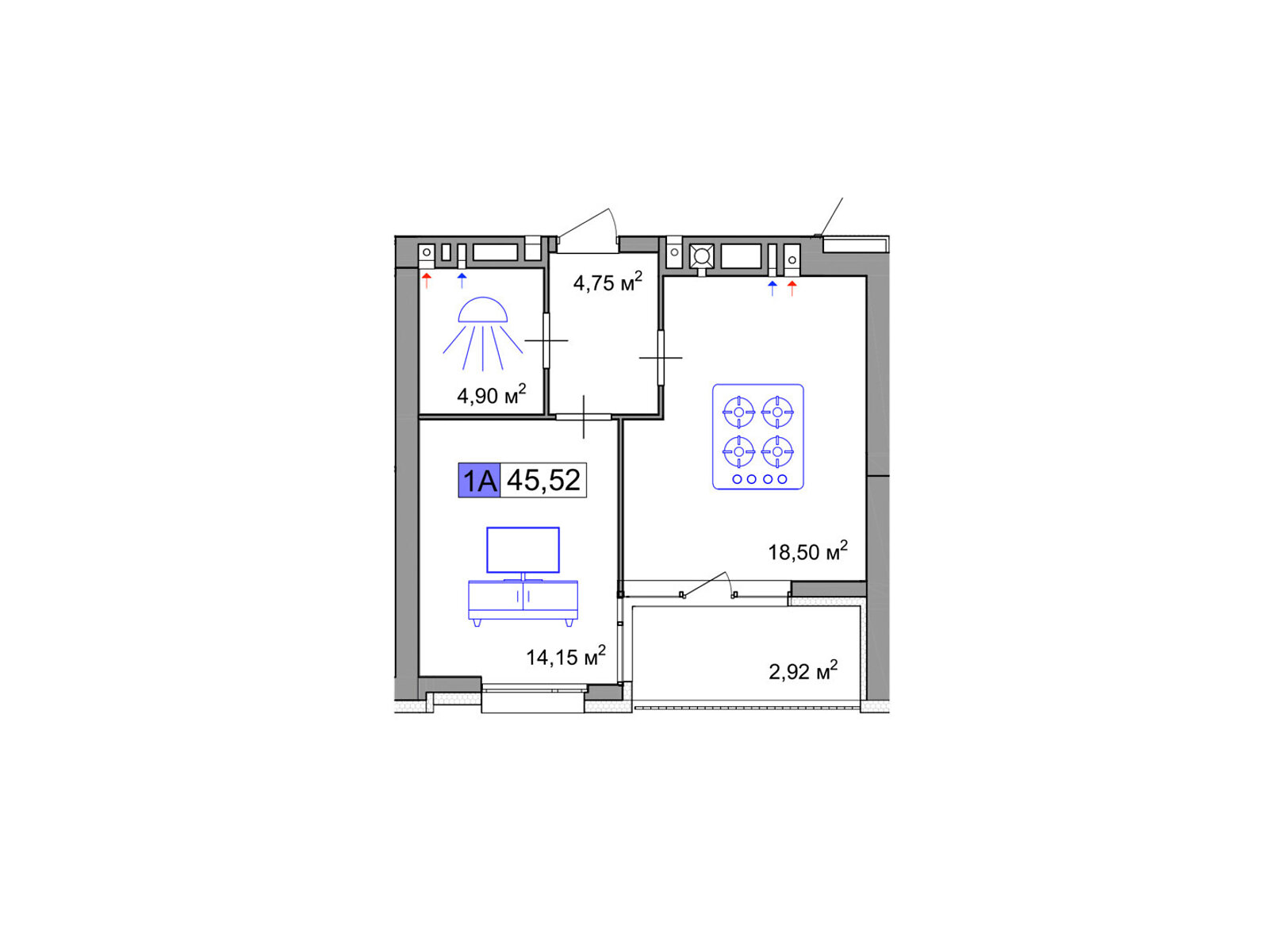 Загальна площа: 45.52 м²