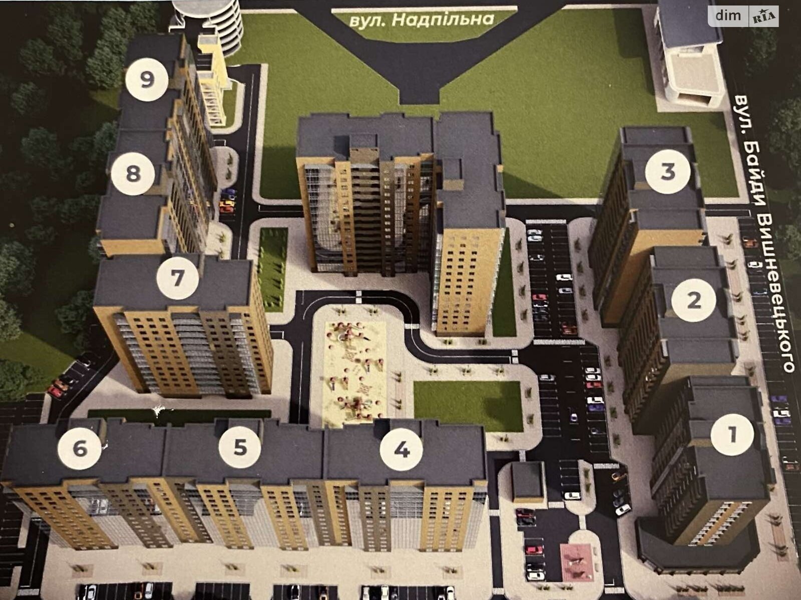 Біля будинку є дитячий майданчик,