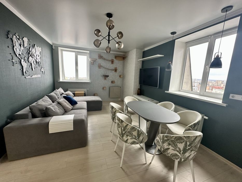 - В квартирі виконаний сучасний дизайнерський ремонт — стильний, теплий, продуманий до деталей.