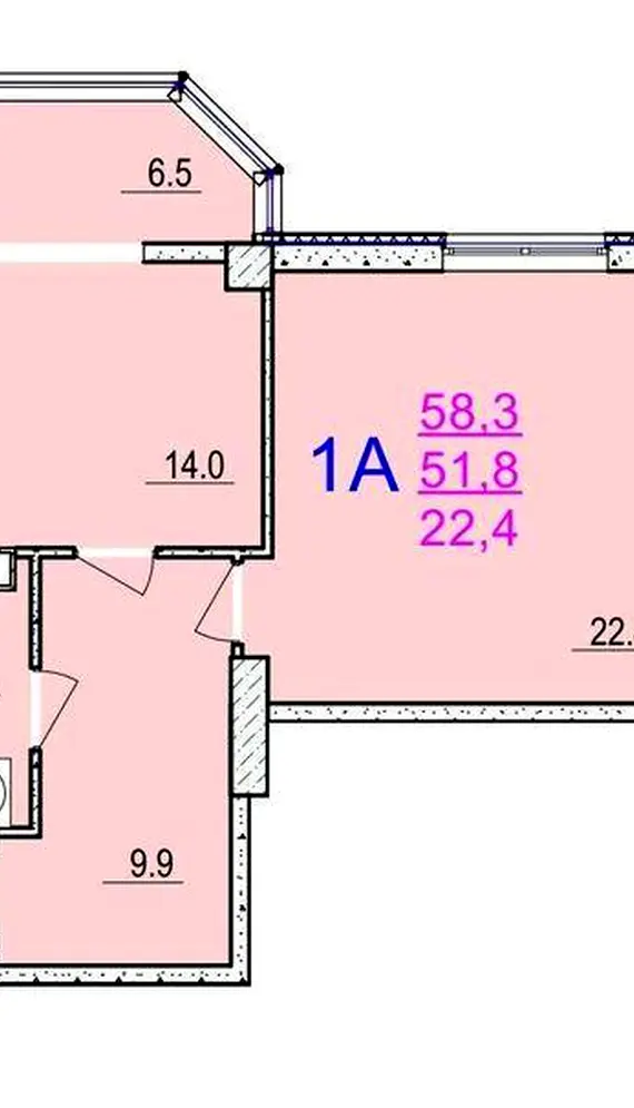 Загальна площа: 58.3 м²