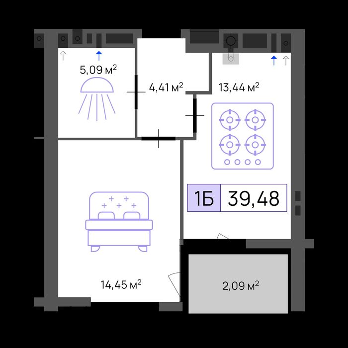 Загальна площа: 39.48 м²