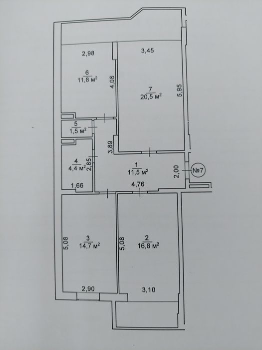 Загальна площа квартири 95,2 м²: кімнати - 16,8 м², 14,7 м², 20,5 м²;