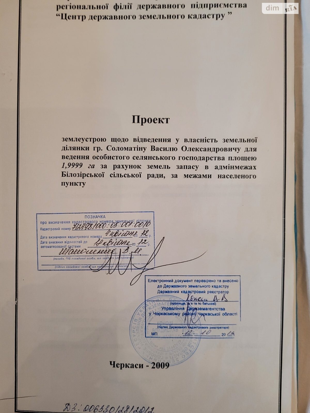 Ділянка: 1.9999 сот.