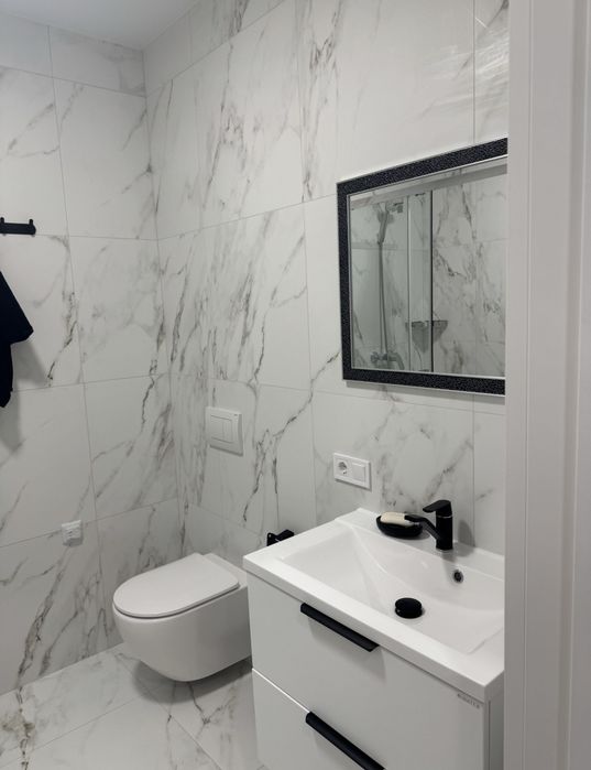 • Вбудований холодильник, посудомийна машина, індукційна плита, духова шафа,бойлер на 100л, обідній стіл з керамічною стільницею, телевізор Samsung 100 см, диван, інсталяція унітазу, підвісний умивальник, кондиціонер.