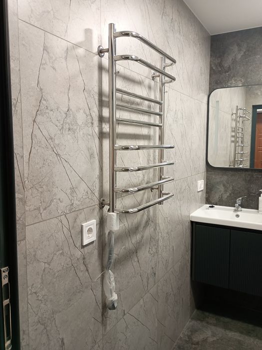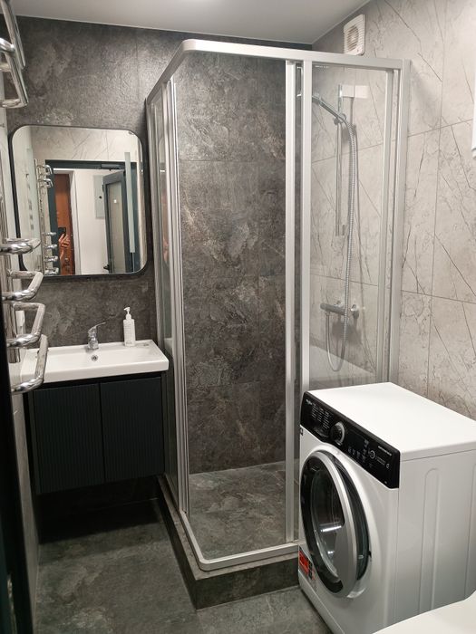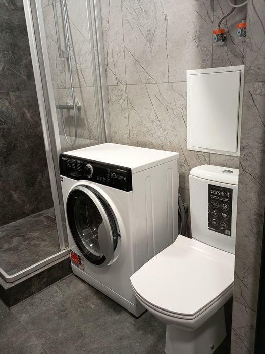 Сучасна ванна кімната: душова кабіна, пральна машина, бойлер