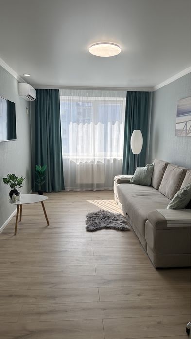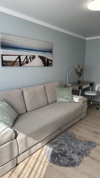- Меблі: Квартира повністю мебльована з розкладним диваном, просторими шафами та місцями для зберігання