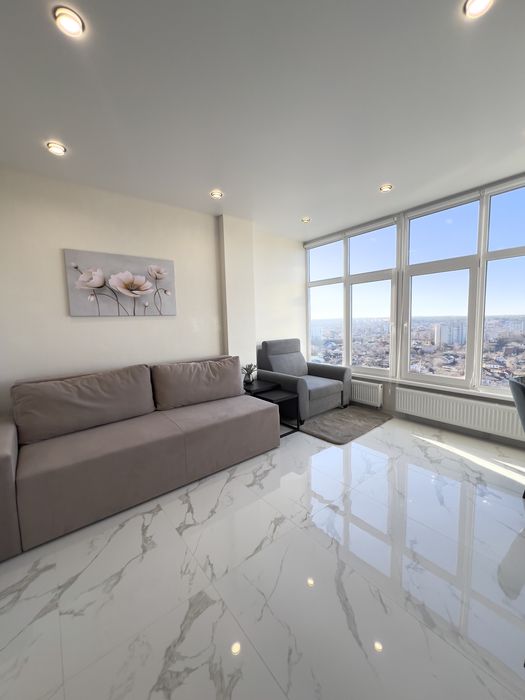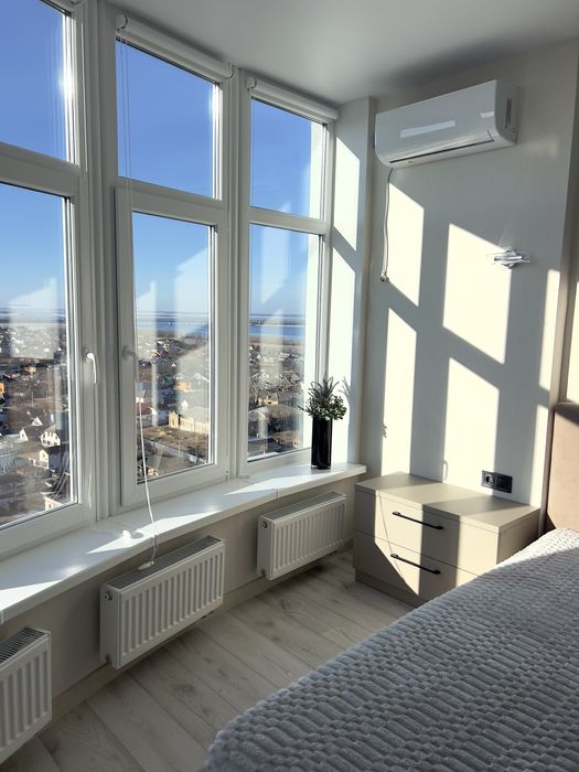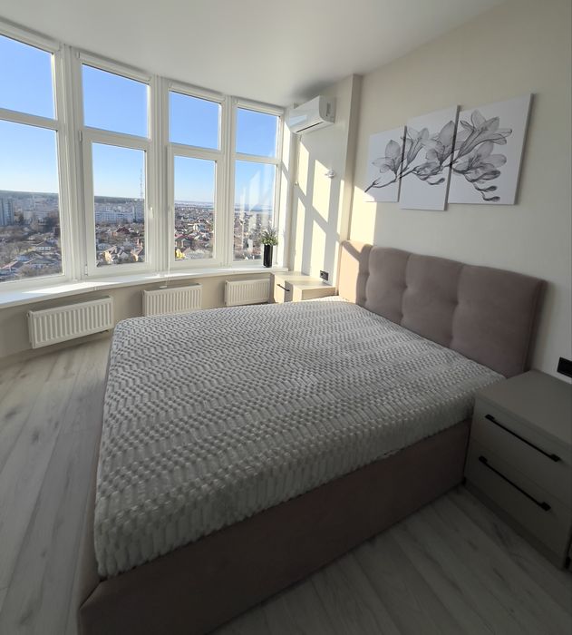 Оренда дизайнерської квартири в новому сучасному будинку,квартира з панорамним видом на Дніпро . Укомплектовано сучасними меблями (шафи ,ліжко ,диван ,кухонні меблі ,робоче місце) та технікою (кондиціонер в спальні та вітальні ,пральна машина,телевізор ,варильна поверхня ,посудомийна машина,духова шафа ,мікрохвильова піч).В будинку встановили інвертор на опалення та водопостачання .Вартість 23000+ кп При підписанні договору оренди квартири оплата за перший місяць проживання та страхова сума в розмірі місячної оплати та послуги ріелтора 50% разово .