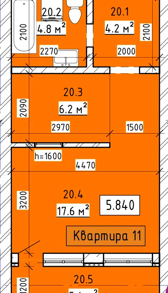 Площа кухні: 6.2 м²