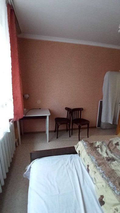 Власниця бабуся хоче одну людину. В кімнаті є всі 2 ліжка, стіл. При вході є шафа купе для верхнього одягу. В кімнаті шафи не має. 2ге ліжко можна використовувати як шафу.